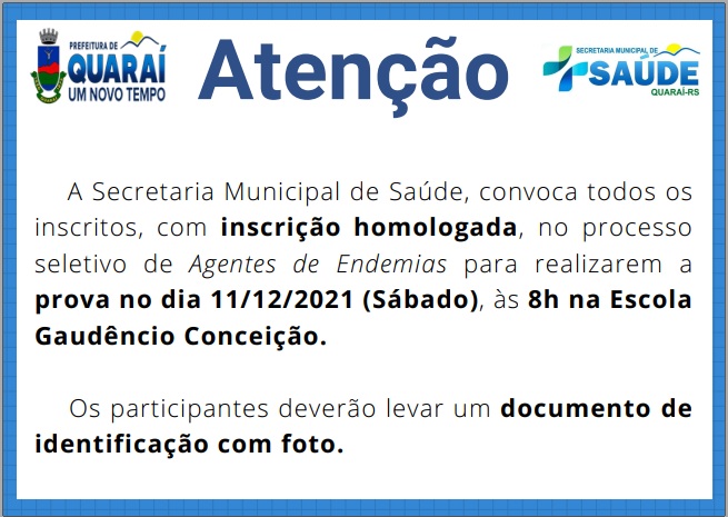 | 01/01/2021 | ATENÇÃO, LOCAL DA PROVA. | Baixar |
