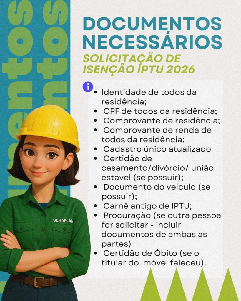 ATENÇÃO: SOLICITAÇÃO DE ISENÇÃO DO IPTU 2026